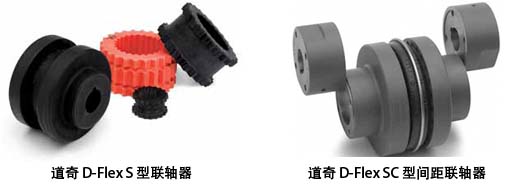 道奇D-Flex联轴器配有模塑的、减少润滑的EPDM橡胶、氯丁橡胶、或热塑性聚酯型弹性材料制成的可更换弹性体。联轴器可作三种挠性运动,可调整扭矩偏差、角度偏差和平行度偏差及轴端浮动。