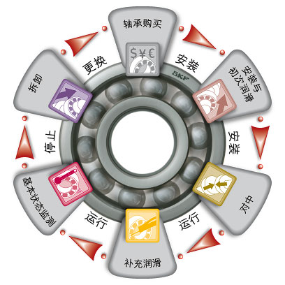 对特定应用选择正确的轴承润滑脂是发挥轴承性能的关键。在合适的时间间隔内使用正确量的 润滑脂也同样重要。过多或过少的润滑脂和不正确的润滑方法将缩短轴承的使用寿命。SKF开发的补充润滑计算软件DialSet,就是用于确定在特定应用工 况下,润滑脂的使用量和补充润滑周期。计算得到的补充润滑周期是以SKF综合型录(GC 5000)中发表的最新轴承润滑理论为基础,综合考虑了所用轴承类型、应用工况和所选轴承润滑脂的属性。 |